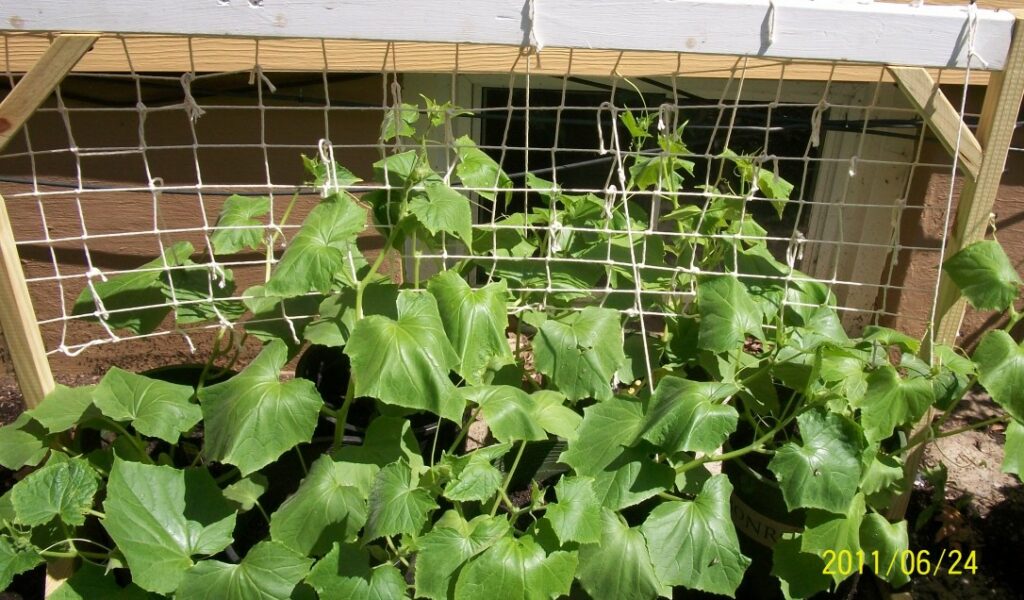 Cucumber plants growing” by Tomwsulcer is licensed under CC BY-SA 3.0